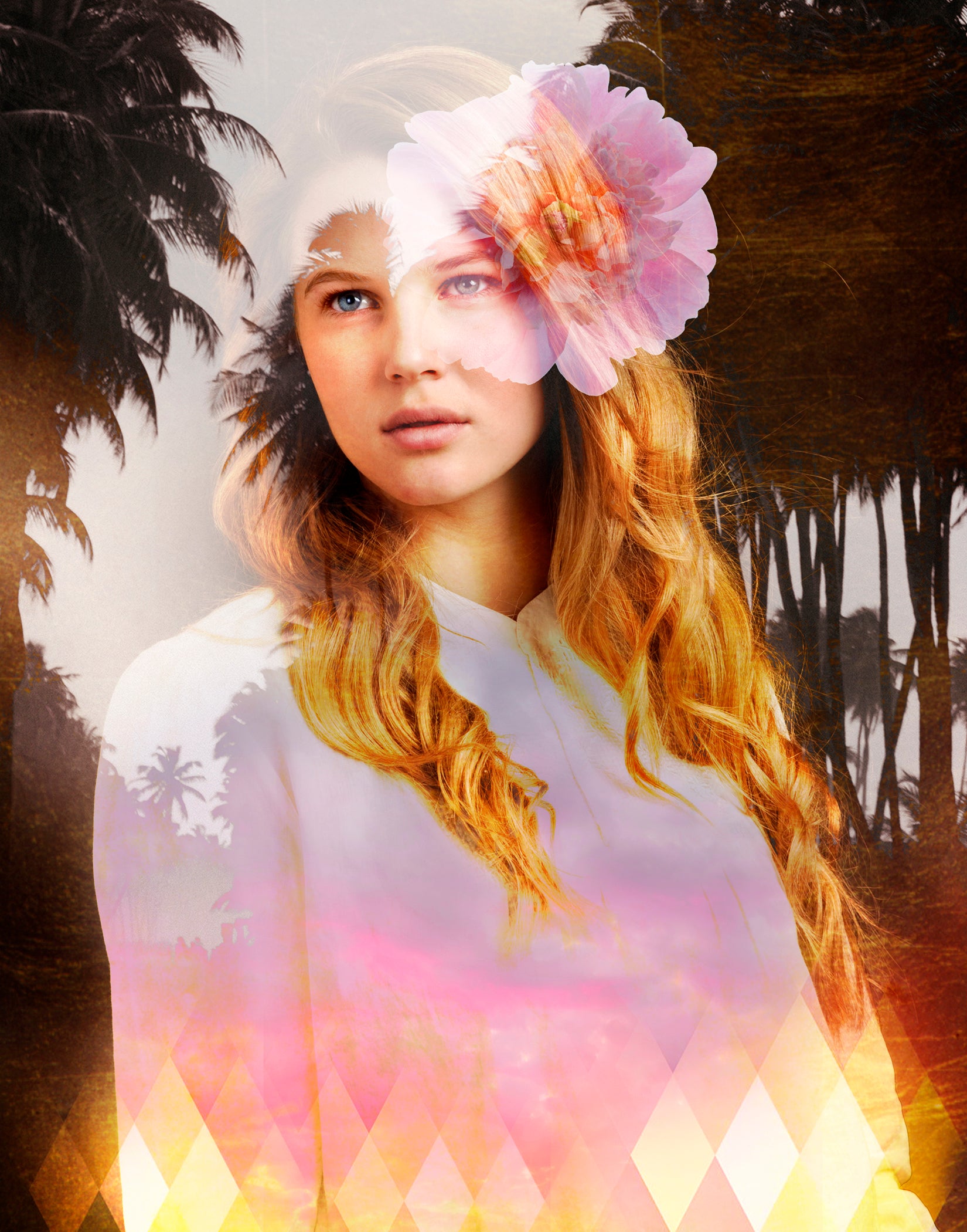 These were early tests by Cassen photographing models in the studio, then bringing those images into Photoshop to further embellish and push beyond the realms of a regular photograph, akin to a photo collage. These were experimentations where she was teaching herself how to convey an idea or mood through a digital lens.